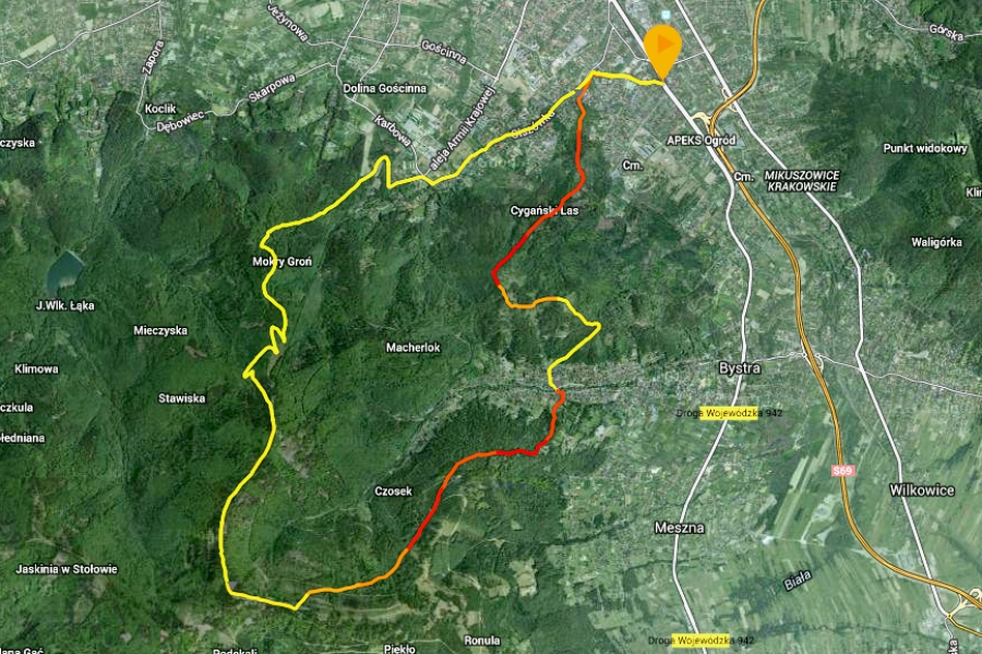 Trasa: Bystrzańska - Cygański - Kozia Góra (P12W) - Bystra - Klimczok (BTC) - Szyndzielnia - Dębowiec - Cygański - Bystrzańska (21,86km; 2godz47min36sek)