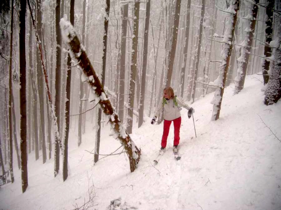 Było tak: Nie pojechaliśmy na zawody Pucharu Połonin z przyczyn subiektywnych i postanowiliśmy się przejść. Plan padł na dzikie ostępy Beskidu Żywieckiego w rejonie Oszusa. Jedna osoba dotarła nawet do "Pańskiego Kamienia" - http://pl.wikipedia.org/wiki/Pa%C5%84ski_Kamie%C5%84 . Dwóm osobom udało się wdrapać na Wysoką Magurę 1111 m /podawane są różne wysokości/ już po Słowackiej stronie. Potem przedarliśmy się na północne stoki Oszusa i zjechaliśmy w doliny napotykając po drodze drwali z końmi.
