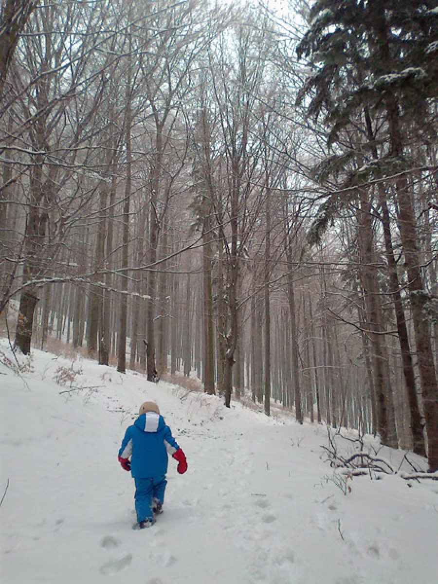 Wystartowaliśmy pieszo trasą na Łazek, po czym przerwaliśmy podbieg, aby powałęsać się po zimowym lesie.