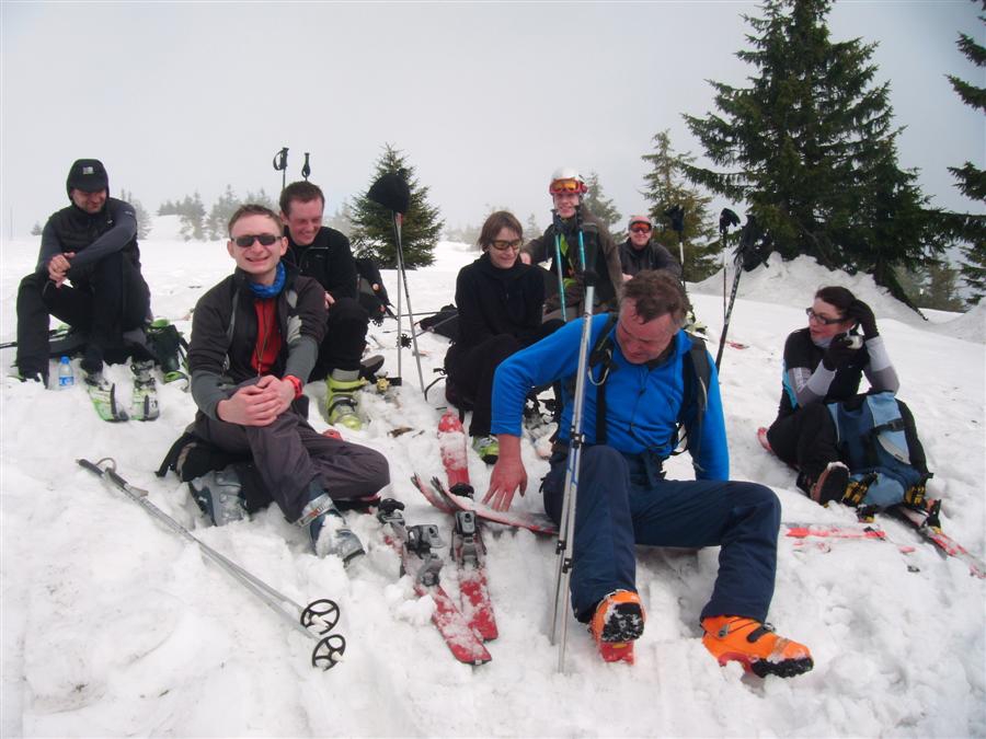 W tym dniu na szczycie stanęły 4 osoby. Osoby z grupy "A" , które stanęły na szczycie osiągnęły 1411 m, przewyższenia! Wszystkie cztery grupy w sposób bardzo sprawny dojechały do schroniska w Słonej Wodzie, gdzie raczyły się różnego rodzajami trunków. Agnieszka chwaliła się, że wpadła do śniegu po samą brodę.