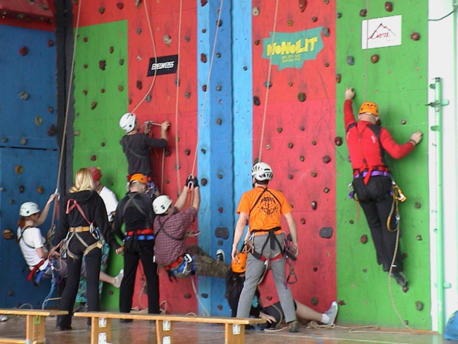 W sobotę kursanci trenowali po raz pierwszy techniki linowe. Komfort warunków w sali gimnastycznej sprzyjał chyba przyswajaniu wiedzy, bo sporo zagadnień zostało przedstawionych i przećwiczonych. Rafał rozwiesił trudny tor linowy, do pokonania którego również wystartowali kursanci. Sekcja Młodzieżowa dopingowała starszych oraz budowała fortece z materacy. Sądzę, że wszyscy się dobrze bawili i nieźle zmęczyli.