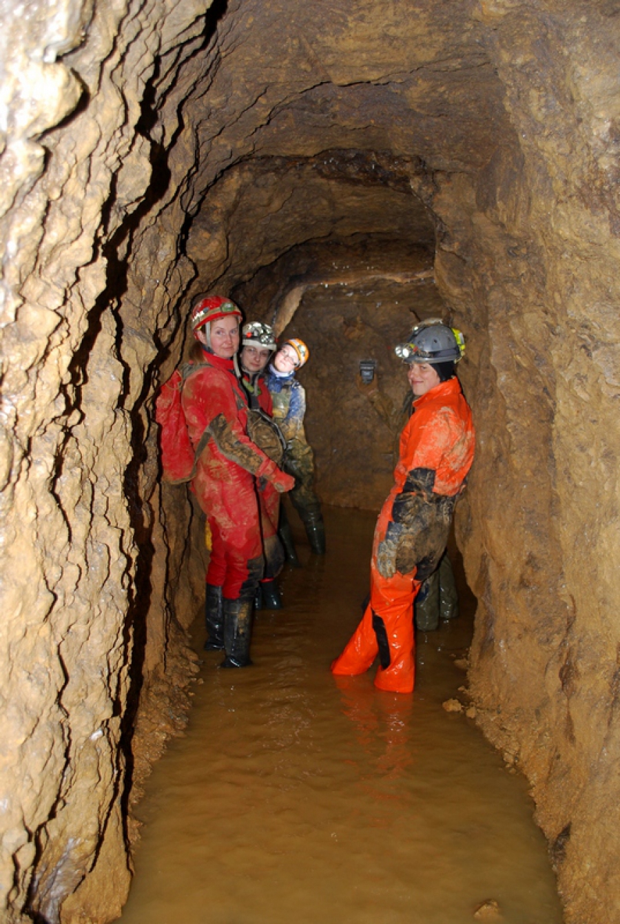 Korzystając z zaproszenia koleżanek z Tarnogórskiego Klubu Taternictwa Jaskiniowego, sobotę spędziliśmy w starych sztolniach tarnogórskiej kopalni galmanu. Brodząc w wodzie prawie po tyłki, nakładając sobie na twarze dolomitowe maseczki ściągające, dotarliśmy na poziom -3 kopalni. Panowie o wzroście powyżej 180 cm narzekali nieco - większość korytarzy nawet Panie pokonywały w pozycji schylonej bądź w kucki (a ponad 100 lat temu ludzie tam musieli pracować). Nie budząc licznych nietoperzy: Nocków, Gacków i Wacków ;) Było bardzo wesoło, można przypuszczać, iż ktoś rozpylił w korytarzach niezidentyfikowaną substancję rozśmieszającą ;) Po wyjściu odbyło się tarzanie w śniegu, celem wyprania kombinezonów, a w pobliżu tarnogórskiego Rynku spożywanie pysznego żarełka meksykańskiego. Bez tequili niestety. A Red's ananasowy jest niesmaczny.