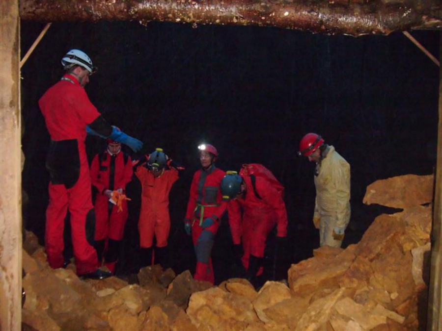Pewien podstęp wyczułem już na początku, gdy nasze Koleżanki z Tarnowskich Gór założyły wodery sięgające im pod pachy! Było miło, wesoło, wodniście! Według szacunków pokonaliśmy 14 kilometrów pod ziemią, w tym około połowy w wodzie po kolana. Kilka osób miało przyjemność skontaktować się z wodą "dogłębnie". Dziękujemy Hannie i Joannie za przewodnictwo. Grupę bielską do wyjazdu zainspirował Frytka. Akcja godna wysiłku!