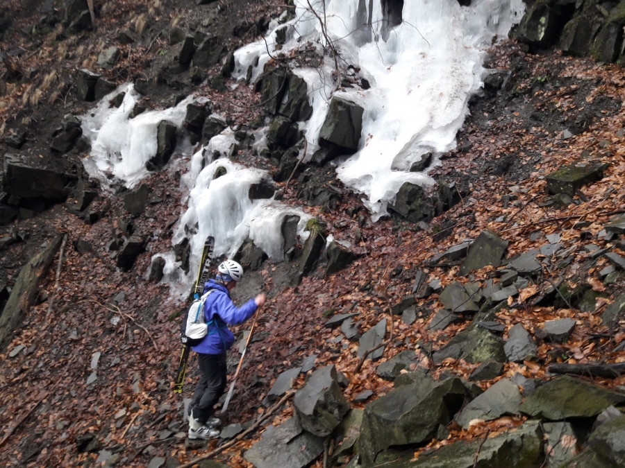 Pokonano 500 w górę. Zjazd trasa narciarska. Żleb dość stromy - opis tutaj - http://dziennikgorski.type.pl/?p=867
