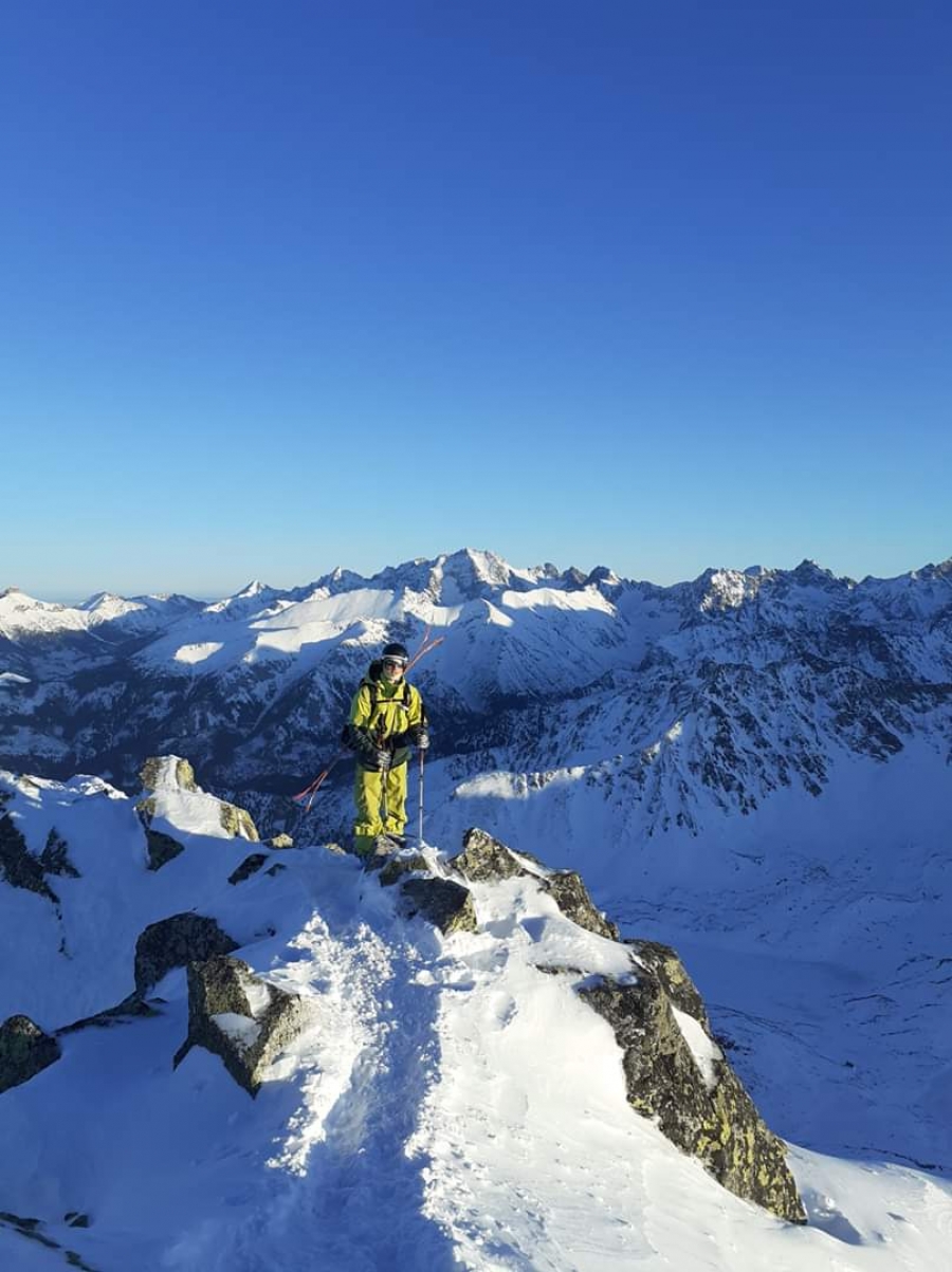 O 6 rano wyjazd z BB, przerwa na herbatę w piątce, na szczycie o 15 stanęli Barek i Tomek. Zjazd drogą podejściową ponieważ szeroki żleb w mojej ocenie mógł "wyjechać" solidną dechą. Śnieg jeszcze słabo związany i leży bezpośrednio na skałach. Na górze mocno zdeformowany przez wiatr, ale im niżej tym zjazd przyjemniejszy. Zachód słońca zaliczony. Zrobiliśmy ok 20 km i 1,5 km w pionie. Powrót do auta już po ciemku. Wszyscy zadowoleni!