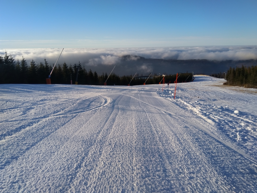 Kazimierz ŚlękTym razem wyjście na Skrzyczne od gondoli przez Zbójnicką Kopę. Od Kopy na Skrzyczne z nartami na plecach. Ale widoki to wynagrodziły. A później z Kopy piękny zjazd przygotowaną na jutrzejsze otwarcie trasą.