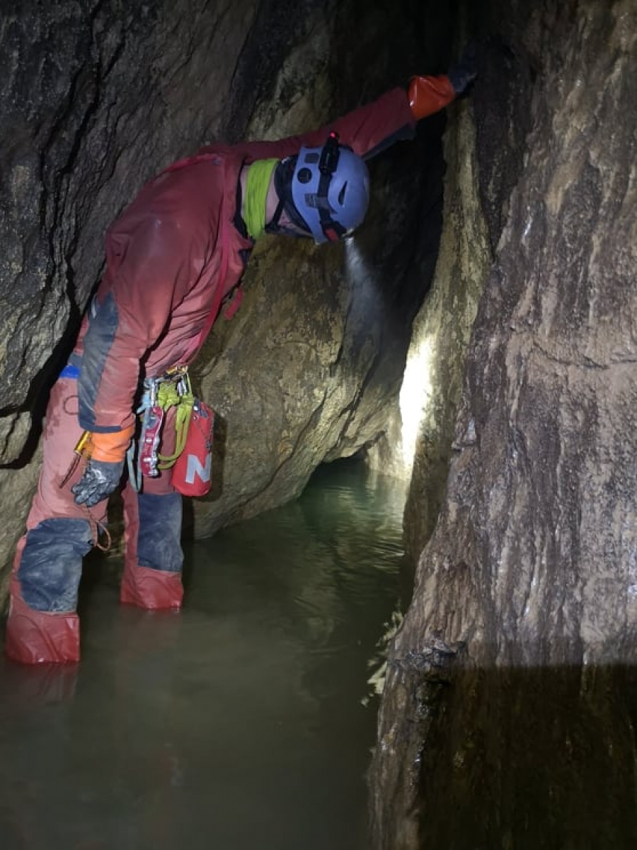 W środku poszło nam szybko i sprawnie. Jaskinia od samego początku bardzo sucha. Rura, komora pod Matka Boską potem krótka obserwacja syfonu Zwolińskich i dalej w drogę. Ciągle w dół - Kaskady, rzut okiem na Ślepy Komin, potem już tylko Piaskowy Prożek i byliśmy w Błotnych Zamkach. Tam krótka przerwa na batonik i niedługo dotarliśmy do naszego celu – do Marwoja. Nikt z nas nie miał jeszcze okazji tam być i wypowiedzieć się o syfonie. Tak czy siak prześwit był, nasi koledzy stwierdzili że przejście "na styk" :)