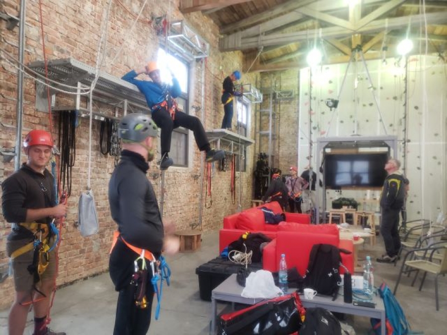 Rozpoczęliśmy zajęcia z naszymi nowymi kursantami. Tradycyjne podstawy na linach w bardzo użytecznej i dobrze wyposażonej salce treningowej "jaskinia słonia" udostępnionej nam przez Roberta, za co dziękujemy. Aktywność i zdolności kursantów, szybka integracja wskazują, że przybywa nam znowu fajna ekipa koleżanek i kolegów. Życzymy wytrwałości i powodzenia.