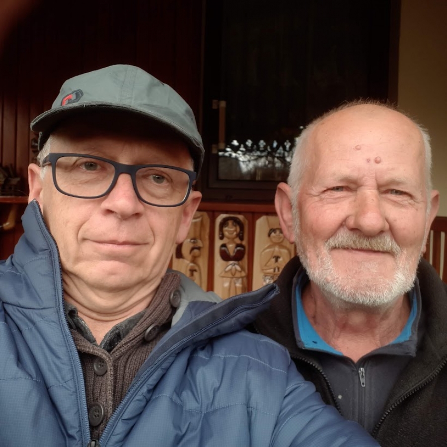 Jan Dunat - WeteranWanda Ganszer - Fanklub Speleoklubu Bielsko-BiałąJerzy GanszerWizyta u Weterana Jana Dunata z Jeleśni. Na zdjęciu to ten po prawej stronie. Z tyłu na ścianie figurki wykonane przez Jana.