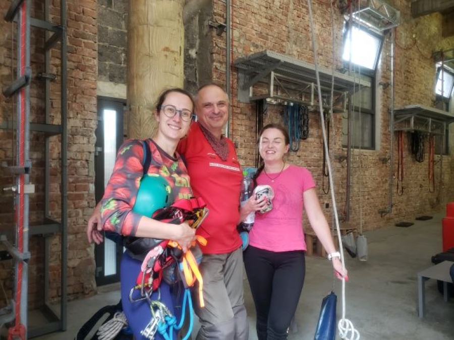 Nowy kurs miał pierwsze zajęcia. Jaskinia Słonia u Roberta jest nieoceniona i bardzo dziękujemy za udostępnienie sali na zajęcia. Sprawnie i dość intensywnie wprowadziliśmy nowych kursantów w pierwsze tajniki sprzętowe. Widać duże zaangażowanie i entuzjazm kursantów. Szefem szkolenia przypinamy jest Bartosz, który ogarnia wszystko organizacyjnie, chwała mu. Sporo klubowiczów dołączyło i zaangażowało się też w szkolenie koleżeńskie, co bardzo ułatwiło i pomogło dopilnować sprawnego operowania sprzętem. Murzyn i Wacek ciągniemy jeszcze, ale niewątpliwie przydałyby się młode siły instruktorskie !!. Na zdjęciu właściciel sali i nasze kursantki.