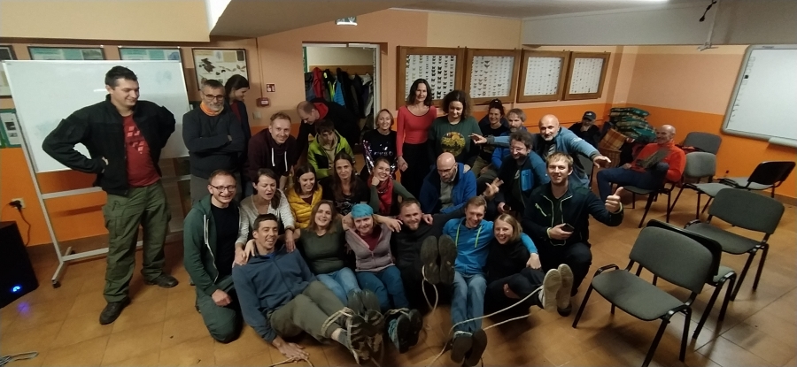 Nie zabrakło ogniska w ten chłodny wieczór, po którym kursanci z sezonu 2022/2023 pokazali zbiorczą prezentacje z całego roku kursu – a w niej kilka ciekawych filmików z mokrych zimowych przejść w jaskiniach.