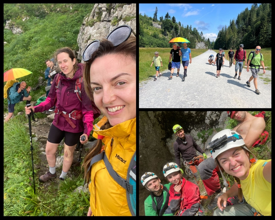 Cóż to był za piękny czas! Czas wspólnego trekkingu, długich rozmów, wieczornej integracji, a przede wszystkim wielu zwiedzonych jaskiń. Jak to bywa na naszym kursie, potocznie zwanym "kursem pod chmurką", nie obyło się bez deszczu, ale czy to nas straszy... skądże znowu! Wręcz przeciwnie, gdyby nie padało, byłoby dziwnie. Deszcz był dla nas tak uprzejmy, że pojawiał się, gdy byliśmy w jaskini lub pod skalnym dachem. A jeśli przypadkiem spotkał nas na szlaku, to dzięki nieocenionej pomysłowości Wacława i jego folii malarskiej, zdążyliśmy zbudować "live shelter" i bawiliśmy się wyśmienicie pod jego osłoną, grając w skojarzenia. A w górskiej scenerii odgadnięcie przedmiotu, jakim były "szpilki" wymyślone przez Kasię, okazało się nie lada wyzwaniem!