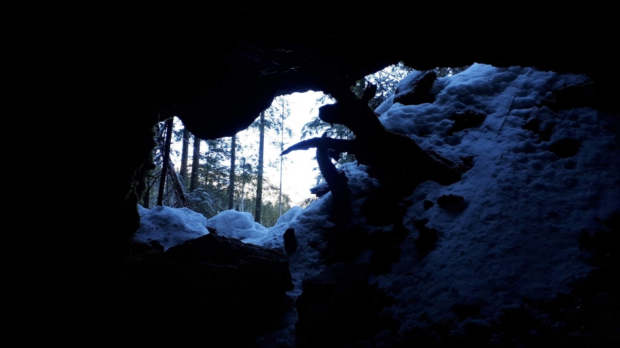 Dotarliśmy do Syfonu Danka i przeszliśmy Zapałki. Czas akcji pod ziemią - 5 godzin. W jeziorku za Salą Rycerska pływa nasza kaczka, w Gnieździe Złotej Kaczki jest "mała kaczka z rogiem". Akcja sprawna a potem żurek! Na zdjęciu otwór jaskini.