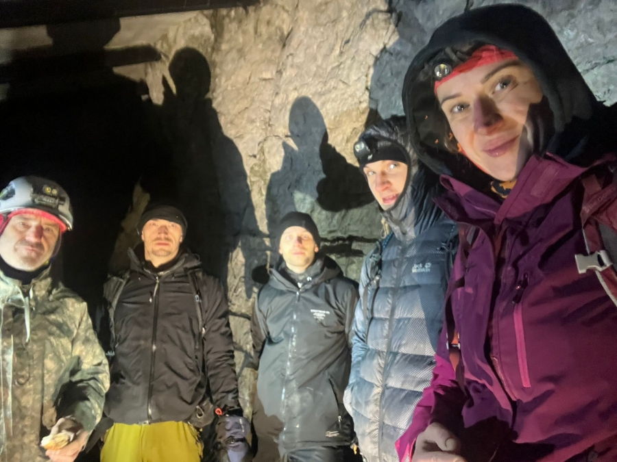 W sobotni poranek pogoda nie sprzyjała naszym planom. Intensywnie padający śnieg oraz temperatura sięgająca -10°C stanowiły wyzwanie nie tylko podczas podejścia, ale przede wszystkim podczas dojazdu w Tatry. Po dotarciu pod wyjście z Jaskini Mroźnej spotkaliśmy zespół Speleoklubu Tatrzańskiego właśnie rozpoczynającego eksplorację. Postanowiliśmy poczekać około trzydziestu minut, aby zapewnić sobie odpowiedni dystans, a następnie weszliśmy do Jaskini Zimnej dolnym otworem.