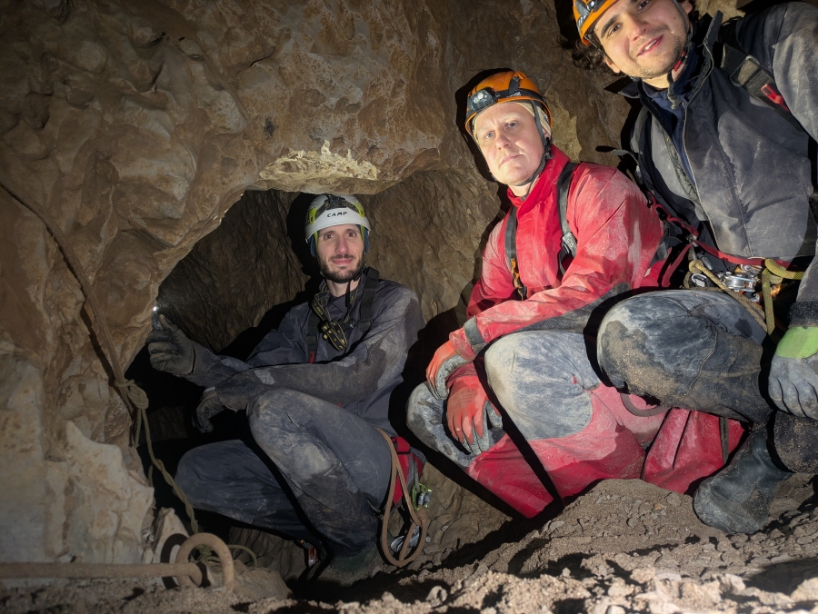W ubiegłą niedzielę wybraliśmy się do Jaskini Kasprowej Niżniej. Na wejściu przywitał nas bardzo niski stan wody, co napawało nas optymizmem co do dalszego przebiegu akcji. Niestety Gniazdo Złotej Kaczki okazało się być zalane, ale to nas nie zatrzymało. Po szybkiej reorganizacji pod Wielkim Progiem ruszyliśmy do Partii Gąbczastych. Szczęśliwie Korytarz Piętrowy okazał się możliwy do przejścia z oczami nad wodą :). Ruszyliśmy w stronę Syfonu Danka, gdzie dalszy przebieg akcji uratował Paweł wspinając komin. Wszyscy zgodnie uznajemy że brakuje w nim 1-2 dodatkowych punktów w dolnej części, przynajmniej dla wspinaczy naszego poziomu. Potem już szybko do celu, szybkie zdjęcie i powrót do otworu tą samą drogą. Na zewnątrz przywitał nas świeży puch, przez który zmęczeni ale bardzo zadowoleni ruszyliśmy na parking do Kuźnic.