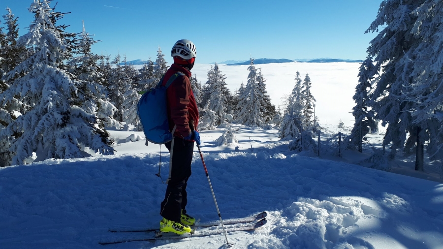 Tym razem udało się nam dojść do Słońca! Zdjęcie wykonano na Małym Skrzycznym. Było widać Sudety i dość wyraźnie w morzu chmur Łysą Górę - za dwa dni będzie tam akcja klubowa na sąsiedni szczyt Travny - będziemy sprawdzać miejsce na przyszłoroczny biwak zimowy.