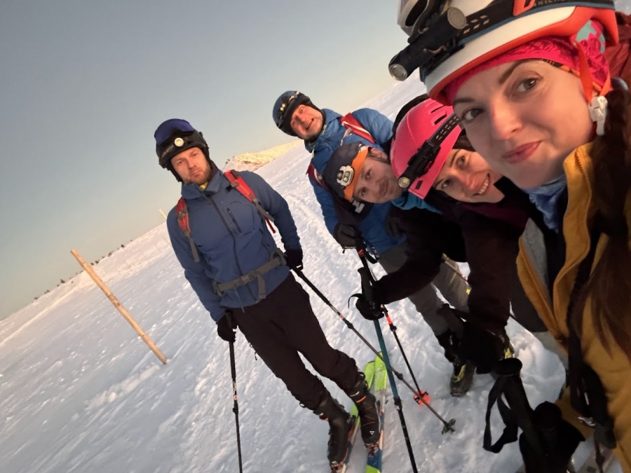 W Karpaczu przywitała nas bajkowa, zimowa sceneria – słońce i idealny śnieg, jakby wszystko było zamówione pod ten wyjazd. Pierwszego dnia grupa skiturowa, w składzie czterech narciarskich wyjadaczy i mnie – żółtodzioba – ruszyła żółtym szlakiem przez Strzechę Akademicką na czeską stronę, do Lucni Boudy. Tam czekał nas zasłużony odpoczynek i czeski gulasz, który smakował jak prawdziwy rarytas. Powrót, czyli zjazd żółtym szlakiem, okazał się jednak moją osobistą „grą o przetrwanie”. Grawitacja szybko przejęła kontrolę, a ja odkryłam, że najczęściej używaną techniką zjazdową może być „ślizg na tyłku”. Podczas gdy reszta ekipy świetnie się bawiła, ja zdobyłam nowe doświadczenie – pokorę i sztukę „kontrolowanego upadania”.