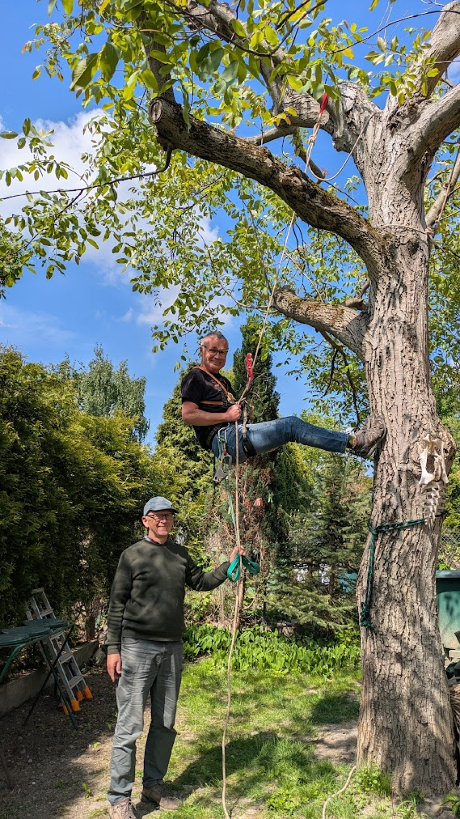 Trening linowy na drzewie.