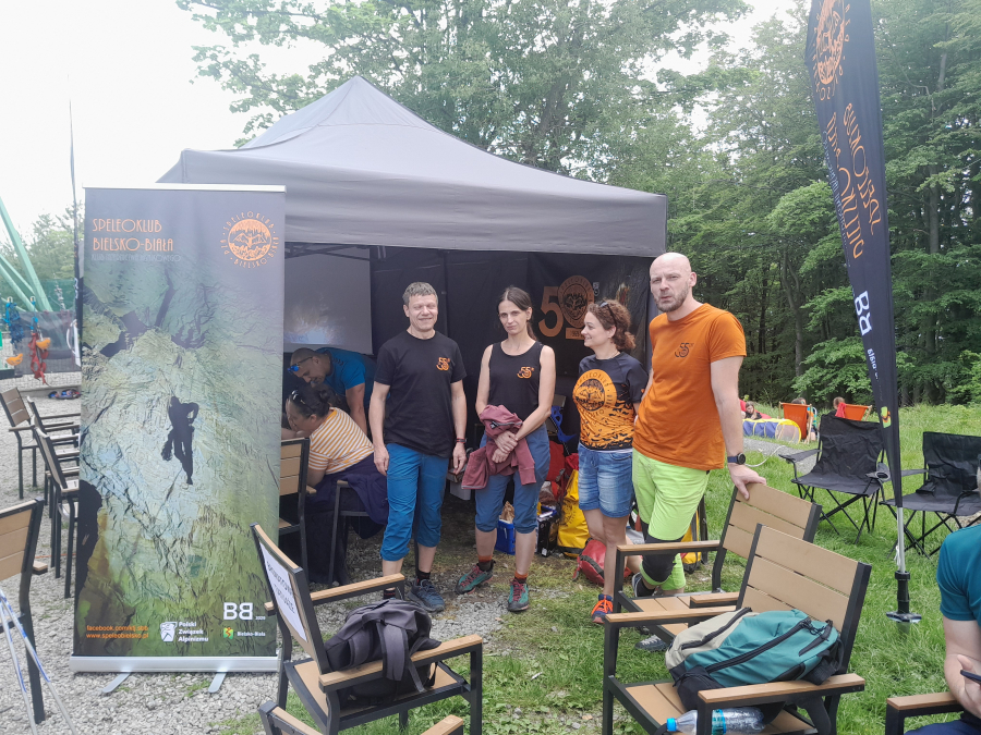 Wystartowałem z Bystrej i dotarłem do schroniska na Klimczoku. Po krótkim odpoczynku ruszyłem na Szyndzielnię, gdzie odbywał się tzw. Dziewięćsił Festiwal (święto Beskidów i Śląska Cieszyńskiego). Oprócz innych swoje stanowisko miał Speleoklub Bielsko-Biała reprezentowany przez silną ekipę (część z nich na zdjęciu). Po spotkaniu z klubowiczami (dziękuję za pyszne ciasto) zszedłem na Kołowrót i dalej do Olszówki. Pogoda mimo strasznych zapowiedzi była dobra. Więcej informacji o wyżej wymienionym święcie znajdzie się mam nadzieję w osobnym sprawozdaniu klubowym.