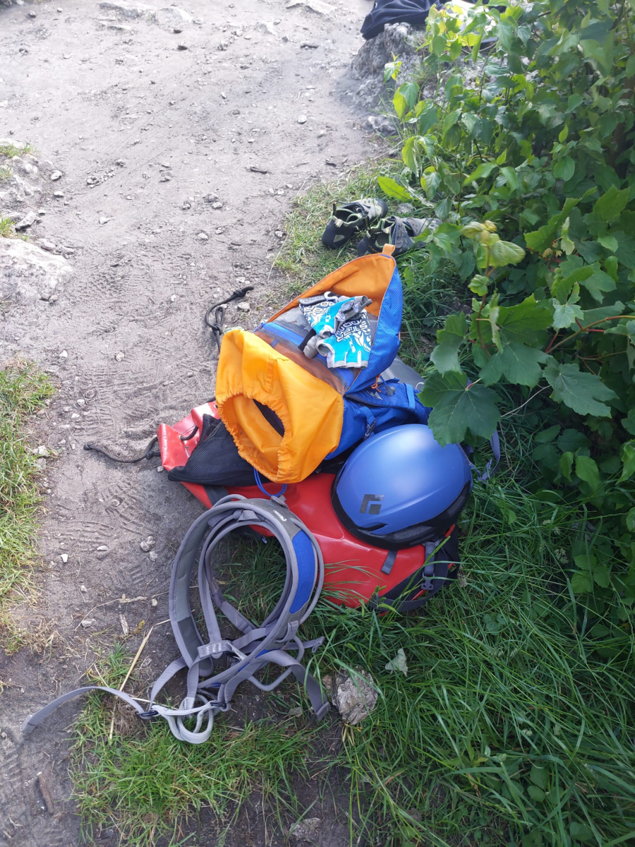 Rzadki widok na jurze wyjmujemy sprzęt i do dzieła skała znana drogi też czyli akcja jedziemy po kolei od lewej 4, 3, 4, 4, 4+ powtórka w trakcie wędka.