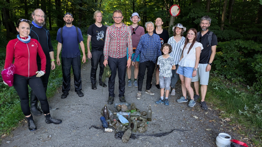 Woda ciepła, wyciągnięto sporo śmieci, głównie butelki plastikowe. Na zdjęciu zebrane śmieci.