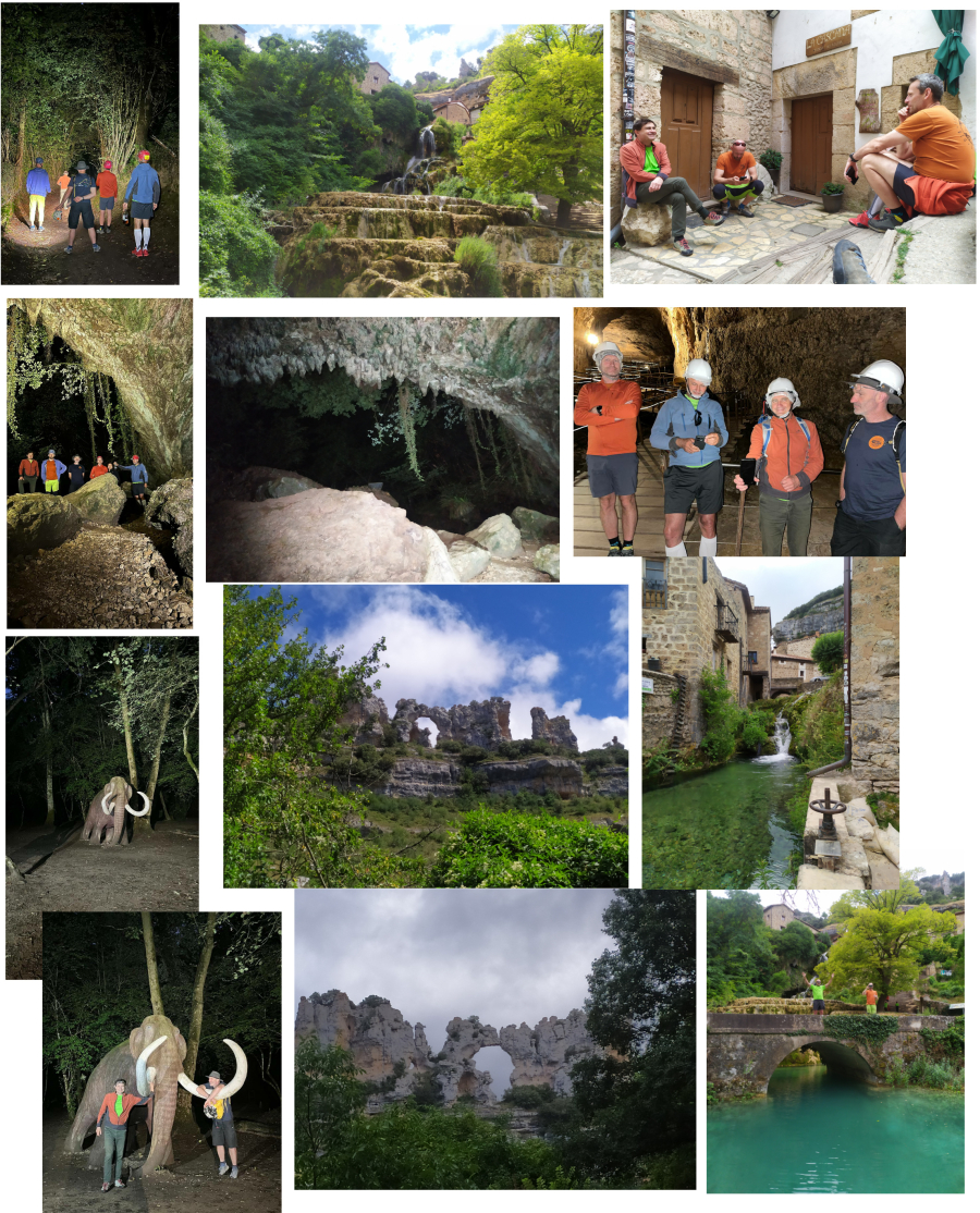 Wracamy do aut i przemieszczamy nad rzekę Ebro. W miasteczku Orbenaja del Castillo są kaskady i jaskinia, Cueva del Agua. Woda wypływa z niej obfitym wywierzyskiem, tworząc rwący strumień w górnej części wykorzystywany do napędzania kół wodnych. Dalej spływa pięknymi kaskadami i wpada do rzeki Ebro. Kaskady tworzą martwice, misy napełnione krystalicznie czystą wodą o kolorze szmaragdu, wapień osiadając na trawach, mchu, gałęziach tworzy trawertynowe formy, obok których nie dawało się przejść obojętnie. Nad największym jeziorkiem jest most łukowy z którego można podziwiać misy. Rzeka Ebro przepływa przez masyw tworząc wąwóz, który w tym miejscu łamie się o 180°. Ściany wapienne lśnią bielą i brązem. Po środku zakola, nad wąwozem wyrasta wysoki na kilkadziesiąt metrów, długi na kilometr skalny grzebień ze skalnym mostem. Do miasteczka wzdłóż kaskad prowadzą wąskie schodki, na których jest kilka sklepików i kafejek. Idziemy na kawę i kanapki, spożywane na schodkach z widokiem na kaskady i wąwóz smakują wyjątkowo.