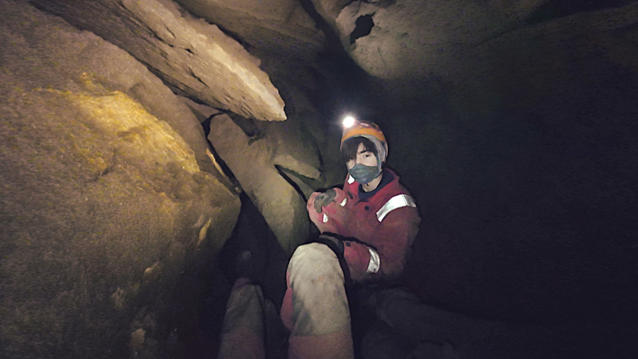 Nieudana próba pokonania ciasnej, zaciskowej szczeliny biegnącej równolegle do Sali Gądka. W końcowej części wsunięto kamerę za zakręt - analizując nagranie oceniamy, że szczelina jest całkowicie zablokowana. Rozważyć można przedostanie się do końca wspinaczką przez górną, szerszą częścią szczeliny, ale miejsce jest mało obiecujące.