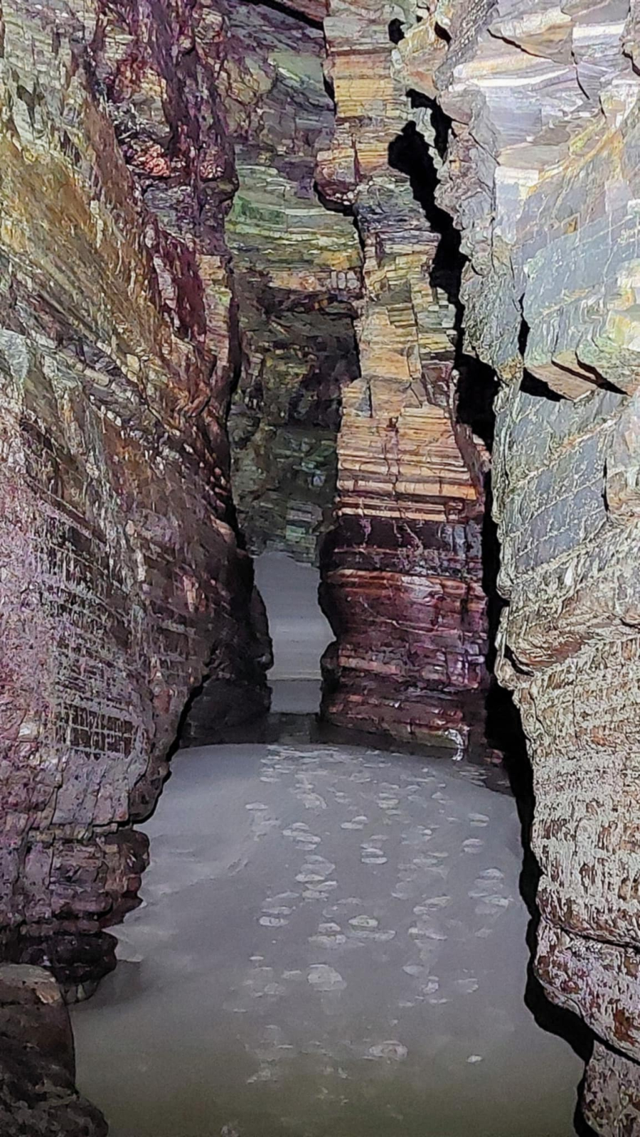 Galicja Playa de las Catedrales. Na zdjęciu widać ślady ludzkie.