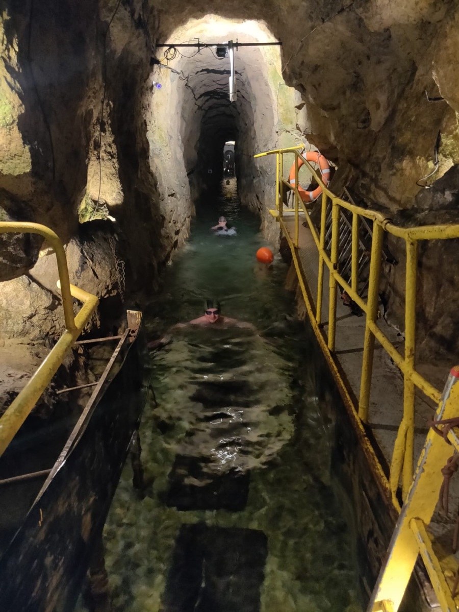 Kolejny rok dumnie reprezentowaliśmy nasz klub w pływaniu w wodzie po pas w sztolni w Tarnowskich Górach. Dopłynęliśmy do łódki. Temperatura wody w sztolni to 8 stopni, czyli cieplej niż na zewnątrz.