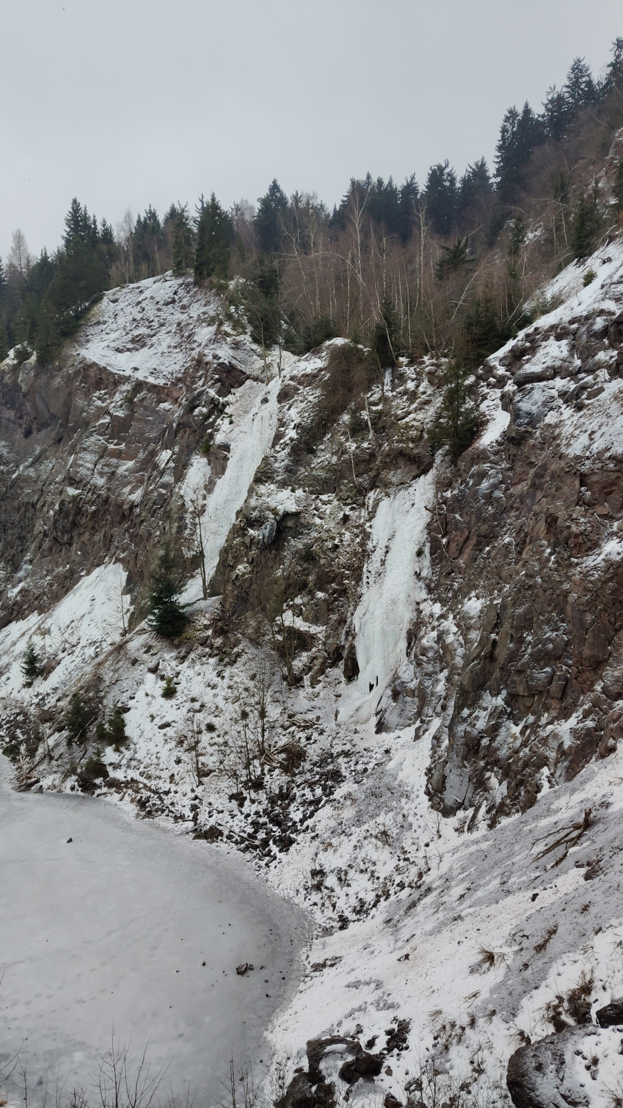Z uwagi na wolny wtorek wybieram się na szybki rekonesans warunków w Głuszycy, gdzie w starym kamieniołomie mamy możliwość powspinać się w lodzie.Warunki lodowe bardzo dobre lód zmrożony, twardy, ale widać, że w weekendy miejsce jest mocno oblegane. Sporo dziur po śrubach i w niektórych miejscach praktycznie wykute stopnie od raków. Trzeba się trochę namęczyć, żeby znaleźć kawałek nietkniętego lodu.